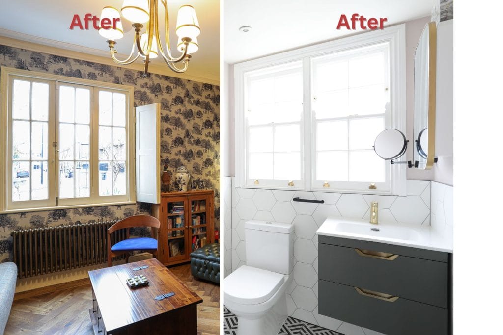 Planning constraints were less restrictive on the rear elevation; however, replacement rear timber sash windows were still required, incorporating slimline double glazing to balance improved thermal performance with heritage sensitivity.