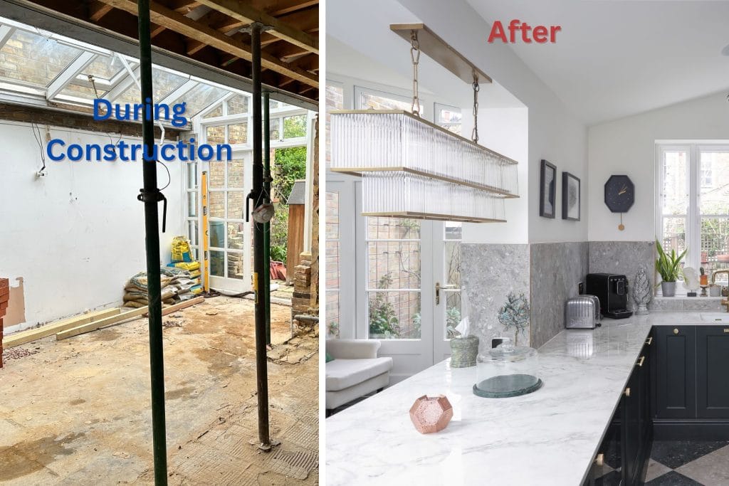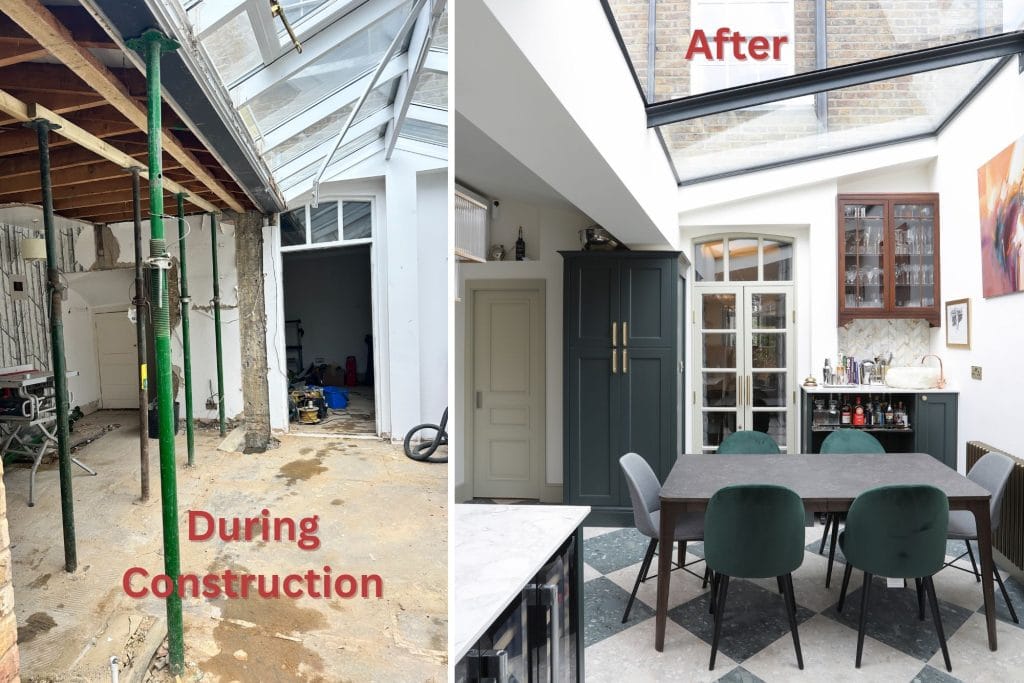 Planning drawings were prepared prior to our appointment. S & M Solutions Ltd were subsequently engaged to take responsibility for the structural design, technical development, and full construction delivery of the works. The scope included a dormer loft conversion, rear kitchen extension, and comprehensive internal refurbishment.